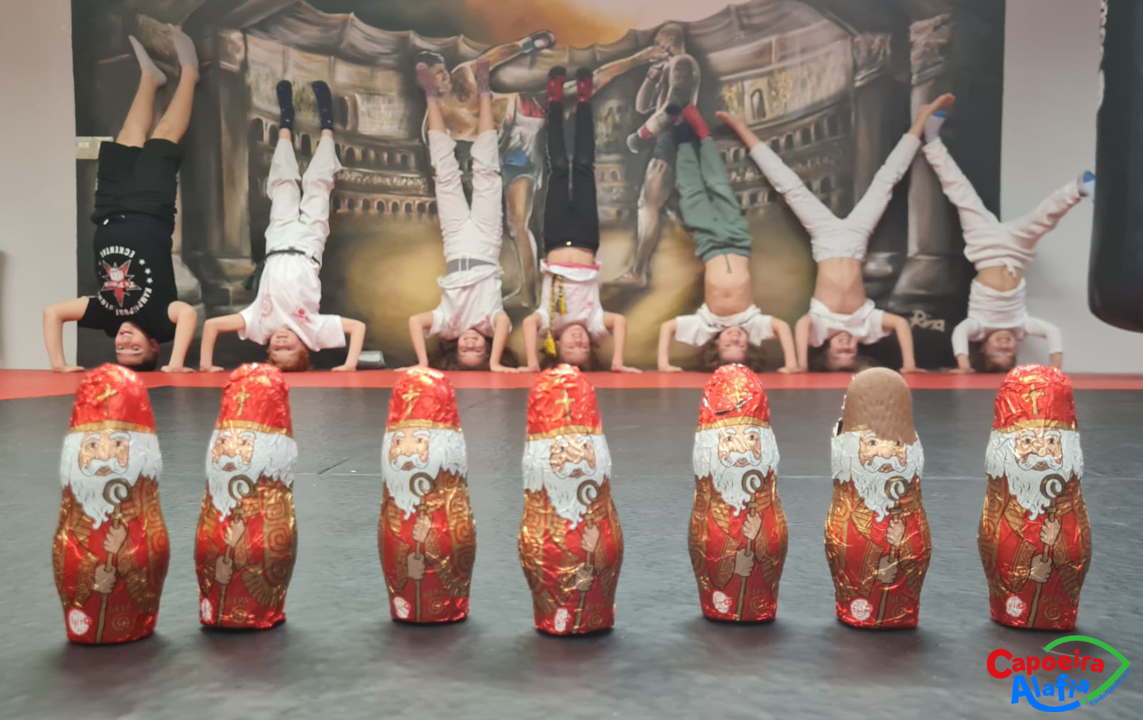 Um den 11. Dezember herum sollen so manche Capoeirakinder ihn gesehen haben, den Kampftanz-Nikolaus. Seine rund 50 schokoladigen Freunde wurden von den Kindern jedenfalls gebührend mit Radschlag, Handstand und Capoeiratritten empfangen.