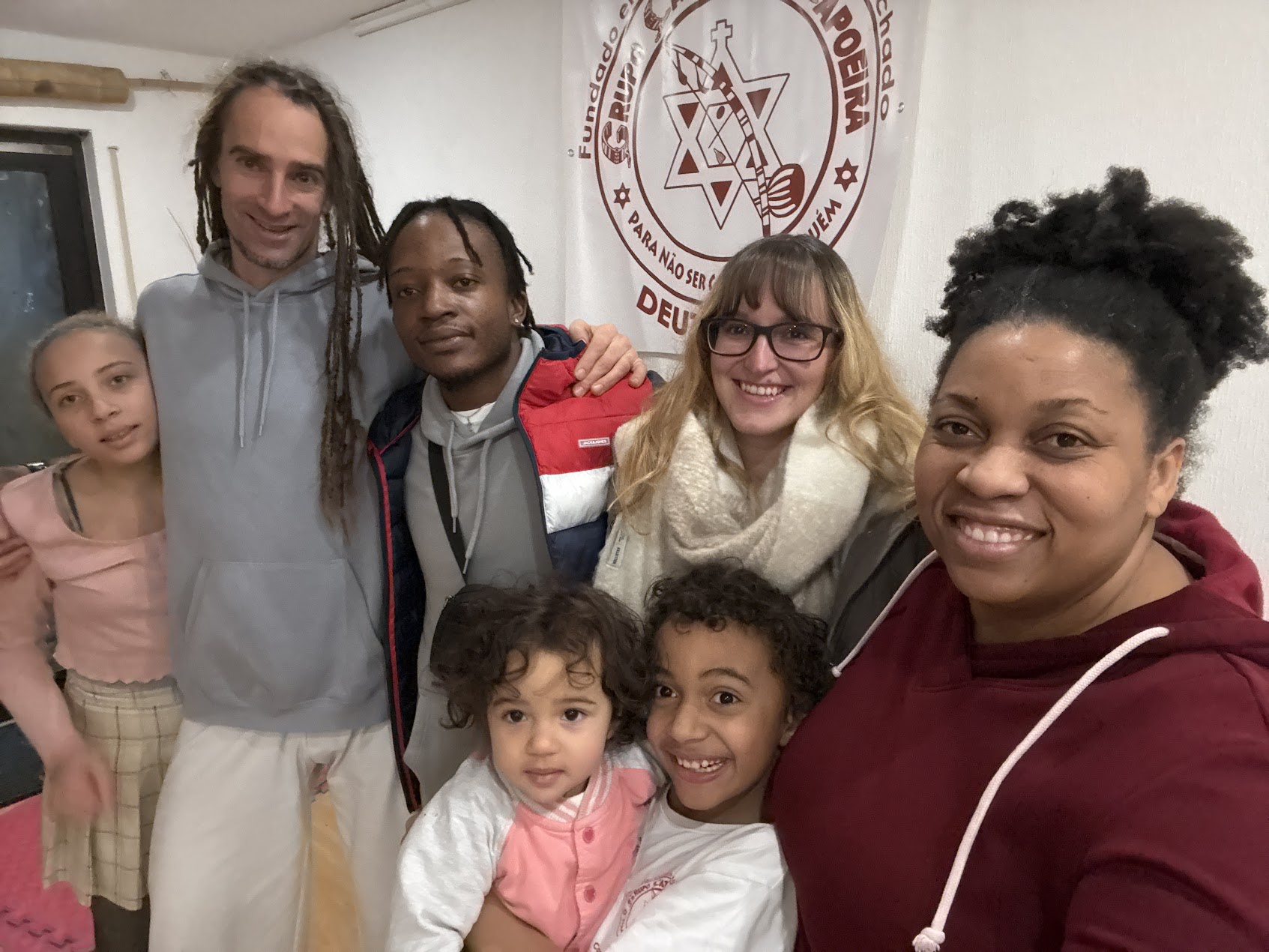 Monitor ‘Gameleira’ der bereits im Alter von sechs Jahren begann in Downtown Kingston Capoeira zu trainieren hat uns – inzwischen als junger Mann – in Deutschland besucht. Durch das von unserem Foerderverein unterstuetzte “Capoeira fuer Frieden” Projekt in Jamaika wurde Gameleira ueber Jahre hinweg die Teilnahme an regelmaessigem Training, Ausfluegen, Lehrgaengen und Vorfuehrungen ermoeglicht.